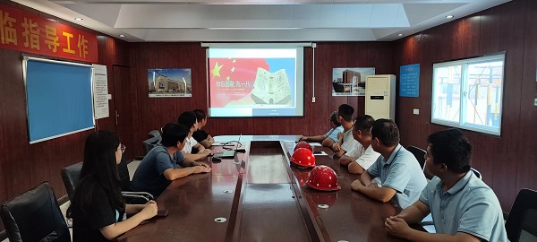 9月18日上午9点,项目组织职工集中观看视频“九·一八事件回顾”,重温抗战历史。1931年9月18日,日本关东军制造了震惊中外的九一八事变……中华儿女为保卫河山浴血奋战,才有了如今的山河无恙。全体职工肃立,共悼同胞,缅怀英烈,默哀致敬!在交流分享环节,大家结合本职工作,逐一分享个人感悟,资料员石尚玉说:“今天的幸福生活来之不易,我要倍加珍惜。工作上履职尽责,把资料管理工作做细做到位。”预算员孙华月表示:“英雄已逝,精神永存,我要以他们为榜样,勇于担当、甘于奉献,精益求精做好预结算工作,争取项目经济效益最大化。”最后,大家集体合唱《没有共产党就没有新中国》。