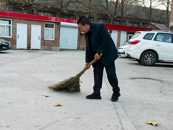 作为兼任分公司院内五家单位的警卫,王亮没把“守大门”当成简单的值守,而是用“多走一步、多想一层”的主动,把院区安全与服务做得既扎实又贴心。夜班值守时,他更把“巡查”做成了“安全隐患排查”,仔细检查门窗、消防器材及车辆停放。有次巡查,他注意到有车辆未关车窗,当即联系了车主,确保安全。而每天清晨的打扫,更像是他对“家”的细致守护的延伸。每天六点天刚亮,多数同事还没出门,他已经扛着扫帚、拎着簸箕,在机关前后院忙活开了。落叶飘在花丛里,他就蹲下来一片一片捡;纸屑卡在砖缝里,他用小夹子慢慢夹出来,连墙角的杂草都要顺手拔掉。“咱守着这院儿,不仅要保安全,更要让大伙儿上班看见清亮的环境,心里敞亮。”王亮的话语朴实无华。在他眼里,“警卫”不只是一份工作,更是守护分公司“家”的责任,这份尽责与主动,正是“把院区当自家”最朴素的表达。