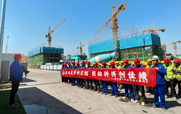 战鼓催征急,攻坚正当时。3月31日,二分公司西三教城中村改造回迁项目举办劳动竞赛启动仪式,吹响“以赛促干”的冲锋号,激励全体建设者鼓足干劲,抢抓黄金施工期,高质量推进工程建设。