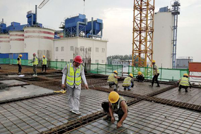同心协力完成节点任务。水泥配料站、水泥粉磨是业主目前关注重点,要求8月3日前筒仓滑模到14.4米库底板、水泥粉磨11.5米平面混凝土浇筑完,为安装辊压机、减速机等设备创造条件。时间紧任务急,持续的降雨反而更加激发了项目部的斗志,水泥配料站筒仓施工采用滑模工艺,滑模平台上钢筋绑扎、预留预埋安装、混凝土浇筑、库壁压面等各道工序相互配合,工种衔接默契。虽然雨水经常光顾,但是大家没有丝毫懈怠,热火朝天的干劲儿始终未减。水泥粉磨车间楼层高、场地狭窄给施工造成困难,项目部采用白天作业面施工,晚上班组倒运材料等方法,保证施工进度。截至7月30日上午,水泥配料站14米库底板、水泥磨11.5米平面、水泥及矿粉储存基础筏板均已浇筑完混凝土,为项目下一步施工创造了积极有利条件。(三分公司)